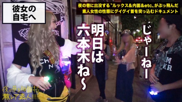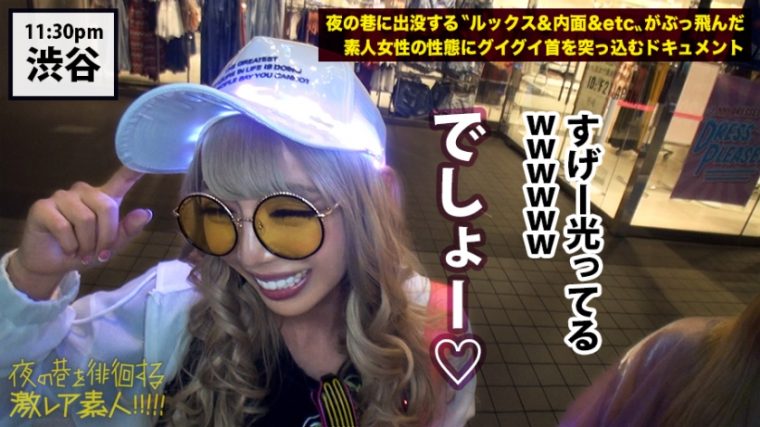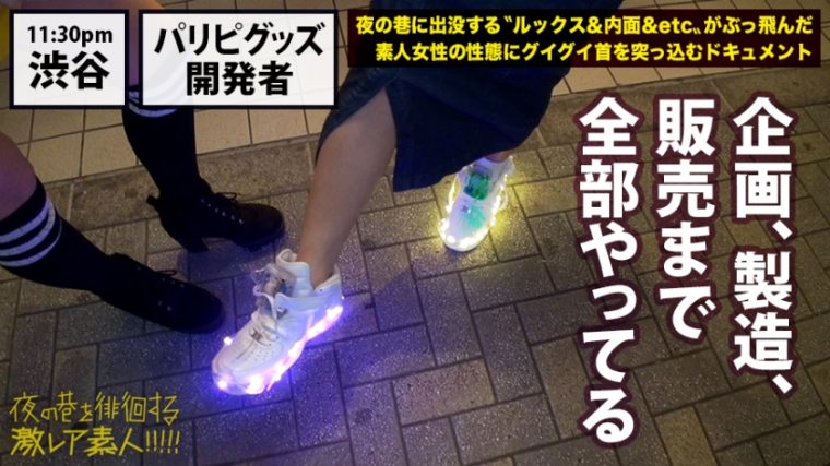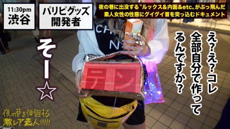 パリピグッズ開発者!!!夜の渋谷を徘徊するぶちアゲハイテンションの超発光ギャル(通称:ギャル電)!!!光るモノに集まる虫(男)達を片っ端から喰い漁る、ニュータイプな激レアギャルのオールナイトに完全密着!!!予想はしてたが予想外過ぎる展開の連発で、とにかく激レアで激エロな撮れ高だった!!!:朝夜の巷を徘徊する〝激レア素人〟!! 01